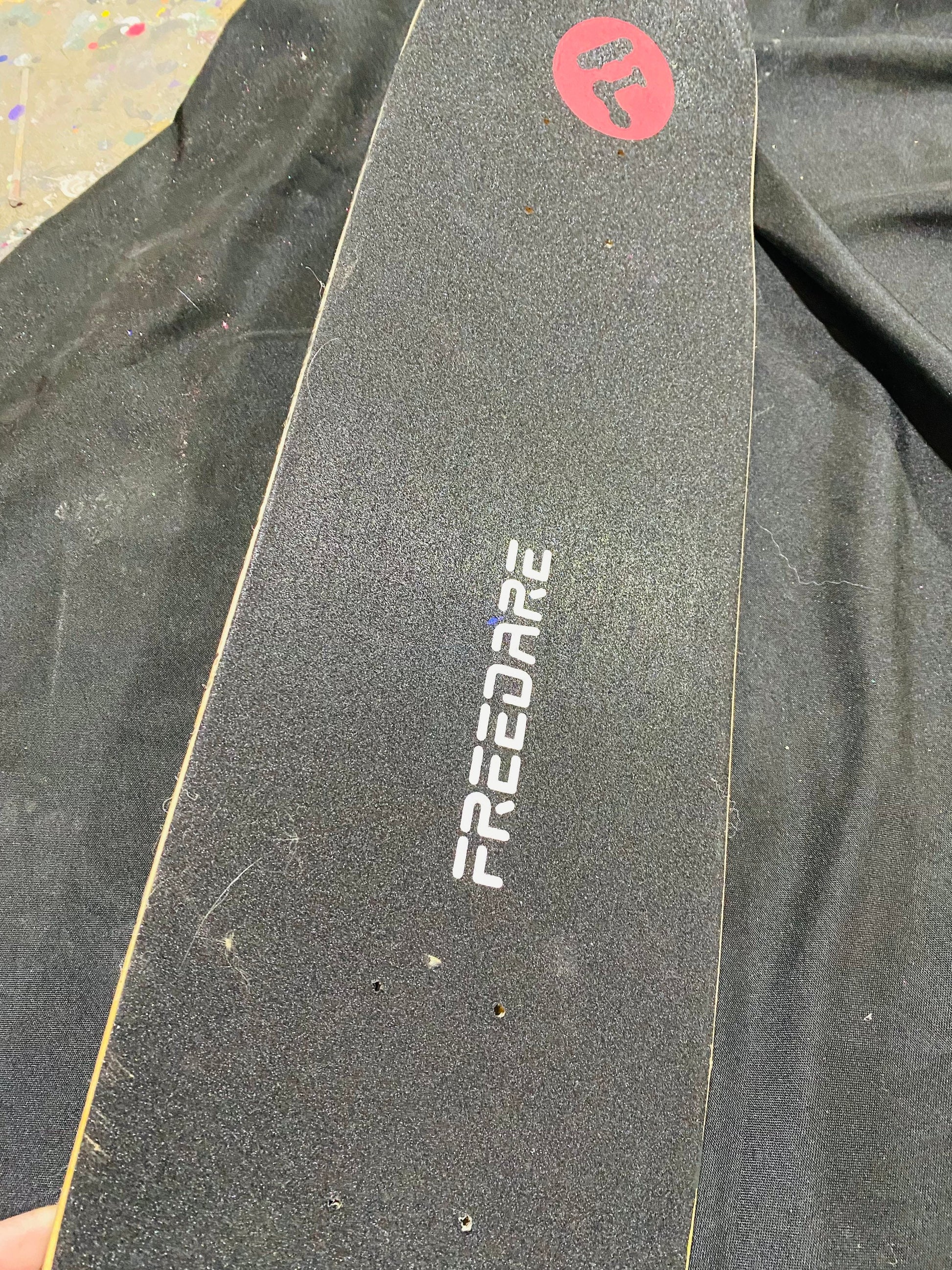 Recycled skateboard deck, ready to mount wheels and axels- grip is already attached.