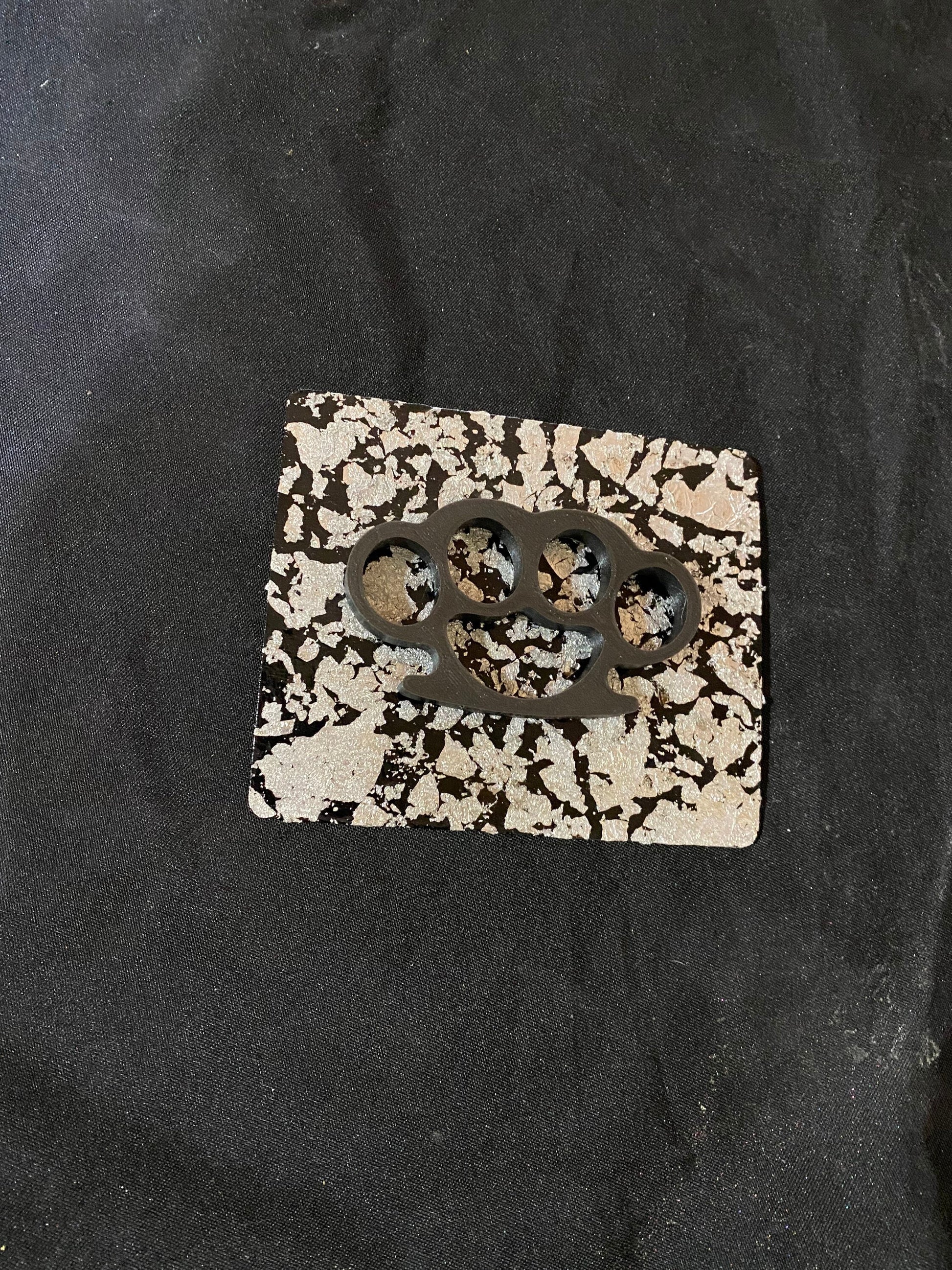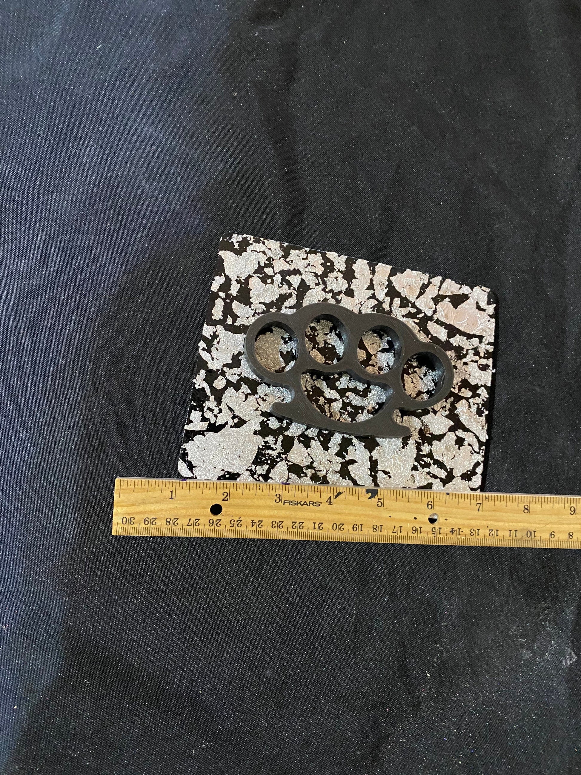 Beautiful and Badass- just like you. 3d printed knuckleduster, mounted on a wooden plaque, and accented with silver flake